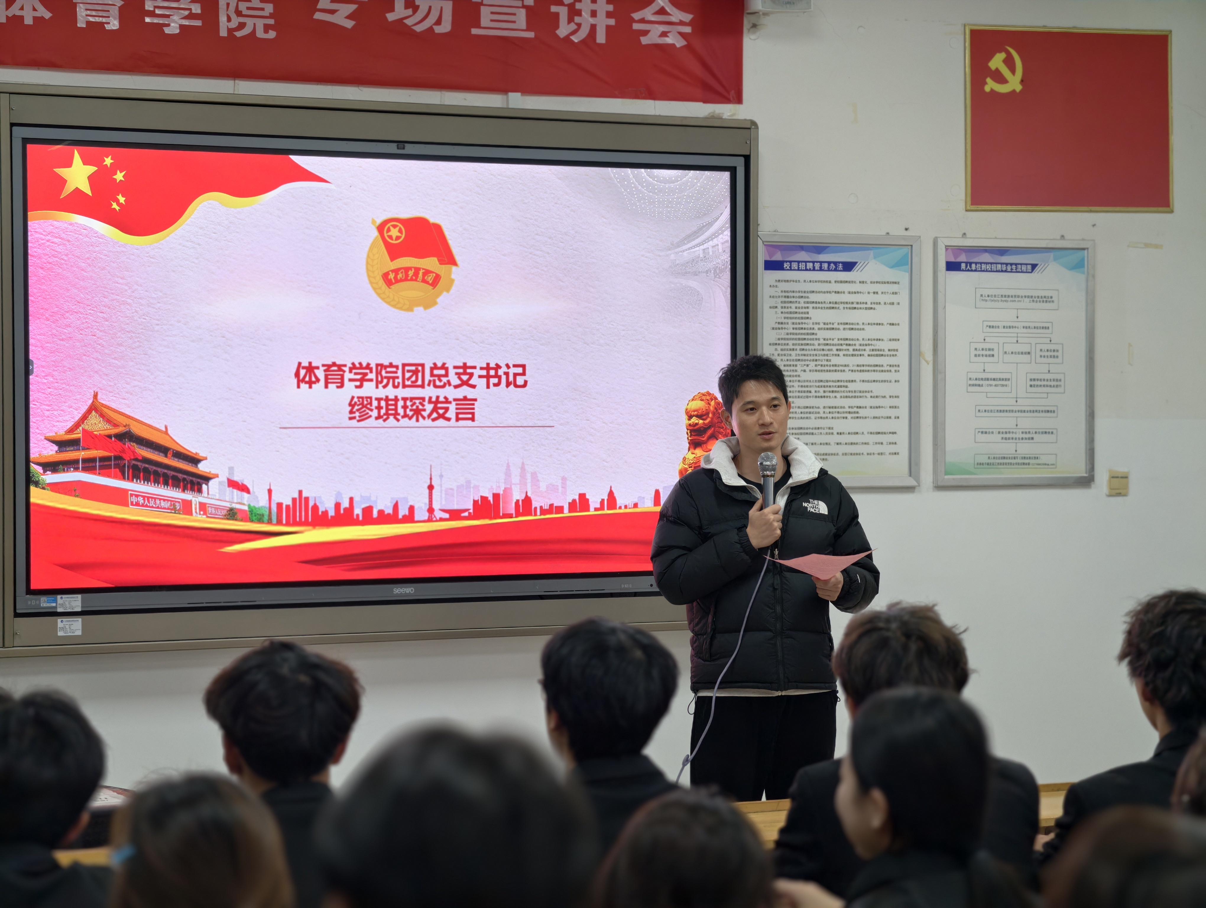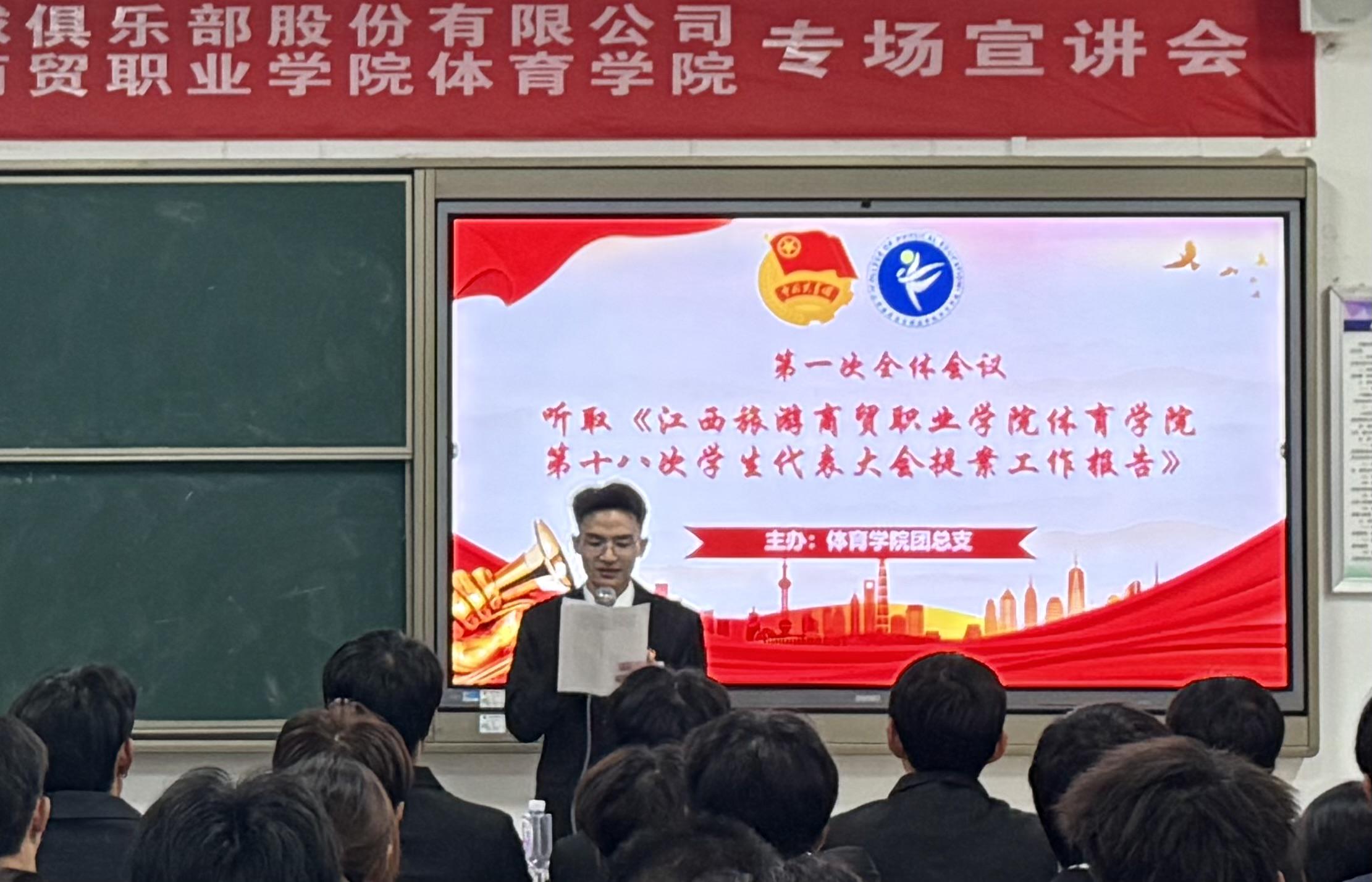 2025年11月26日晚,体育学院第十七次学生代表大会在体育大楼 101多媒体教室隆重举行。体育学院团总支书记缪琪琛、党总支组织委员刘志峰、辅导员周孟冬、戴泓宇,校学生会执行主席江钰及体育学院各班级学生代表出席本次大会。