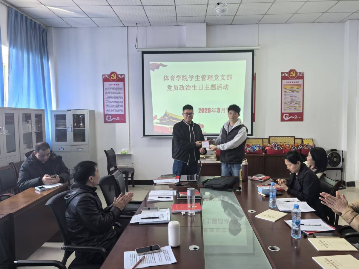 2026年3月10日,体育学院学生管理党支部于体育大楼党员活动室组织开展第二期党员政治学习,支部全体党员同志参加了本次学习。