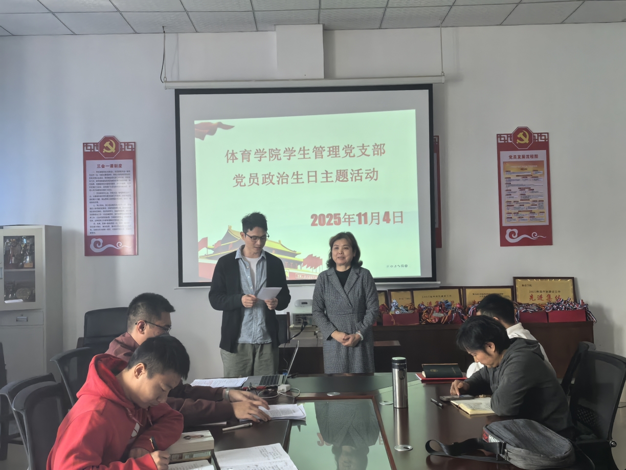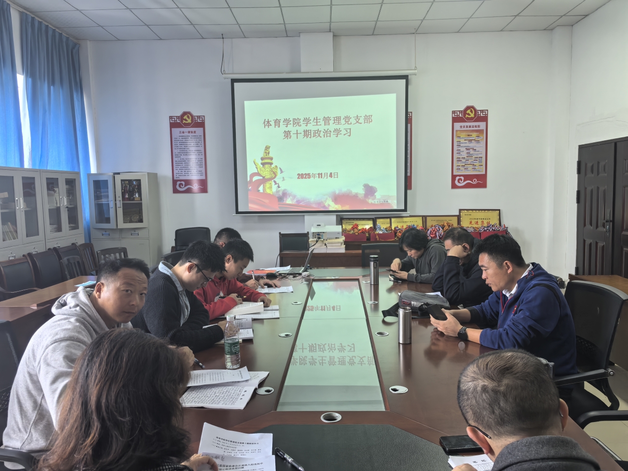 2025月11月4日上午,体育学院学生管理党支部于体育大楼党员活动室组织开展第十期党员政治学习,支部全体党员同志参加了本次活动。